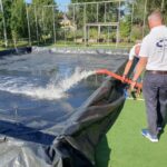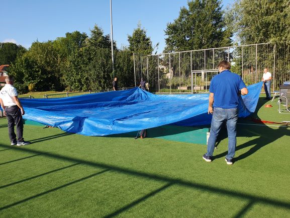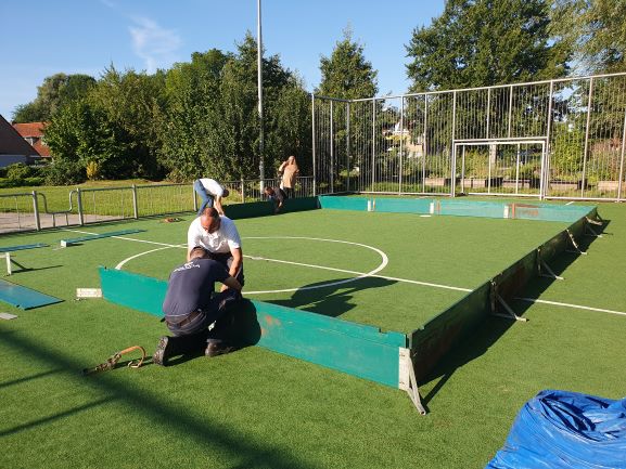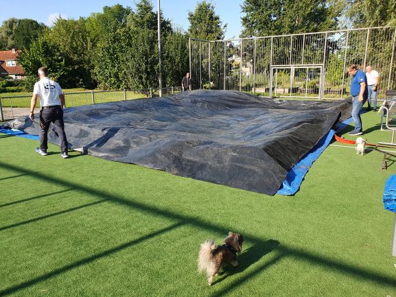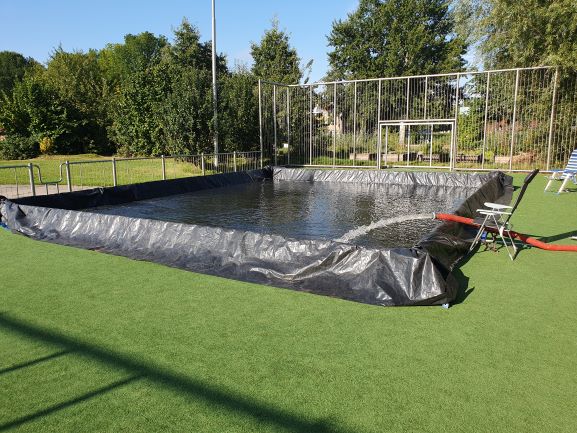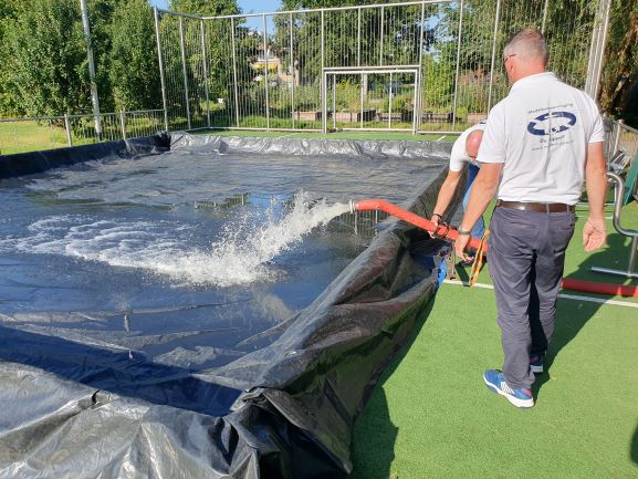 Ons bassin wordt opgebouwd uit losse schorten die aan elkaar bevestigd worden. Hiermee wordt een geraamte gemaakt welke verstevigd wordt door middel van spanbanden. De maximale afmeting van het geraamte en dus het bassin is 18 bij 10 meter. Ook is het mogelijk om een kleiner bassin op te zetten. Nadat het geraamte is opgezet wordt er een groot, zwart plastic zeil in het geraamte gelegd en bevestigd. Vervolgens kan het bassin gevuld worden met water. Zelf zijn wij in het bezit van pompen om het bad te vullen voor als er water dichtbij is. Bij sommige shows is dit niet het geval en dan wordt het bad gevuld door een boer met een grote watertank of door de brandweer.